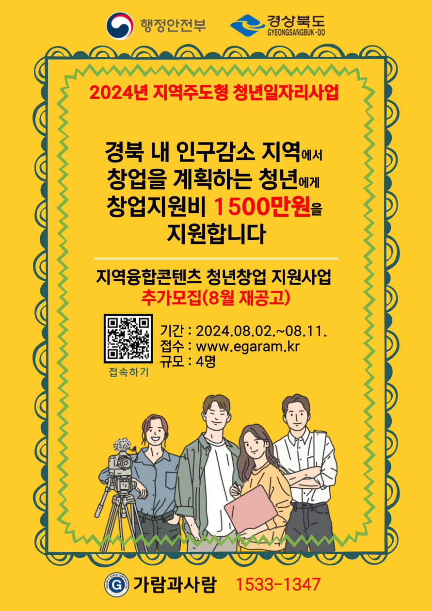 [가람과사람] 2024년 지역융합콘텐츠 청년창업지원사업 추가모집 8월 재공고(~8/11) 관리자 0 2302 2024.08.02 16:15 2024.08.02 16:20 1.공고문_지역융합콘텐츠 청년창업지원사업 추가모집 8월 재공고.hwp (101.0K) + 53 2024.08.02 16:20 2.신청서식_지역융합콘텐츠 청년창업 지원사업 추가모집 8월 재공고.hwp (88.5K) + 37