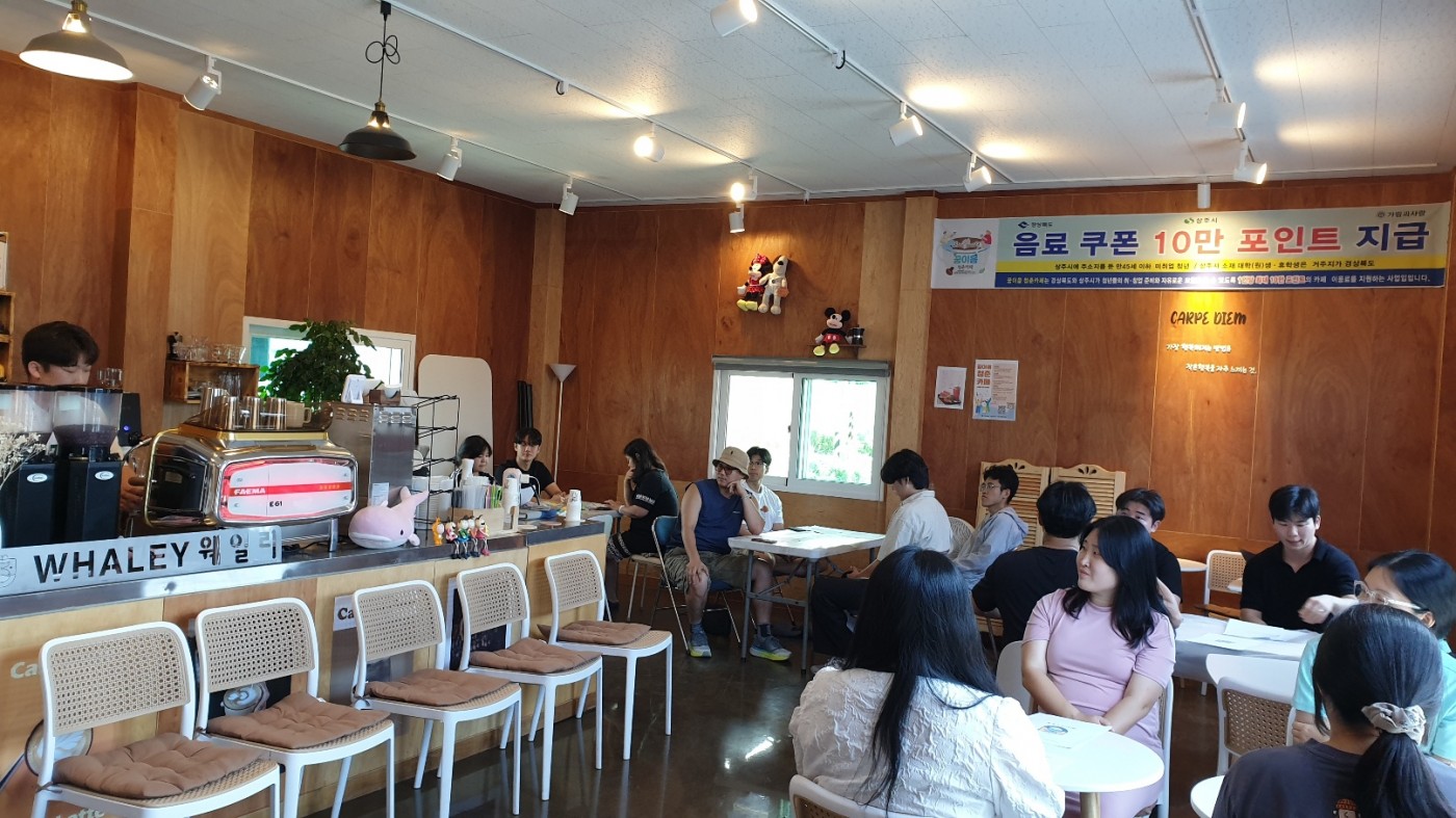 2025년 7월 22일 꿈이음 청춘카페 지원사업 의무교육(웨일리) 관리자 0 410 2025.07.22 16:56 꿈이음 청춘카페 지원사업 의무교육 1. 교육명: 디저트(티라미수) 만들기를 통한 창업의 즐거움 체험 2. 일시: 2025.7.22.(화) 16~18시 3. 장소: 웨일리(경북 상주시 아리랑로 39)