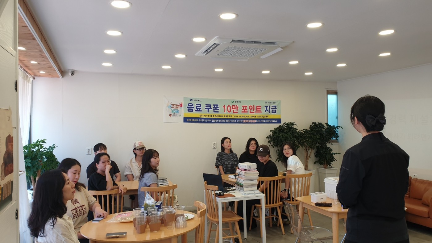 2025년 7월 28일 꿈이음 청춘카페 지원사업 의무교육(화원) 관리자 0 424 2025.07.28 11:23 꿈이음 청춘카페 지원사업 의무교1. 교육명: 상주 샤인머스캣을 활용한 음료 제조 및 커피 추출 체험2. 일시: 2025.7.28.(월) 10~12시3. 장소: 화원(남문1길 15)