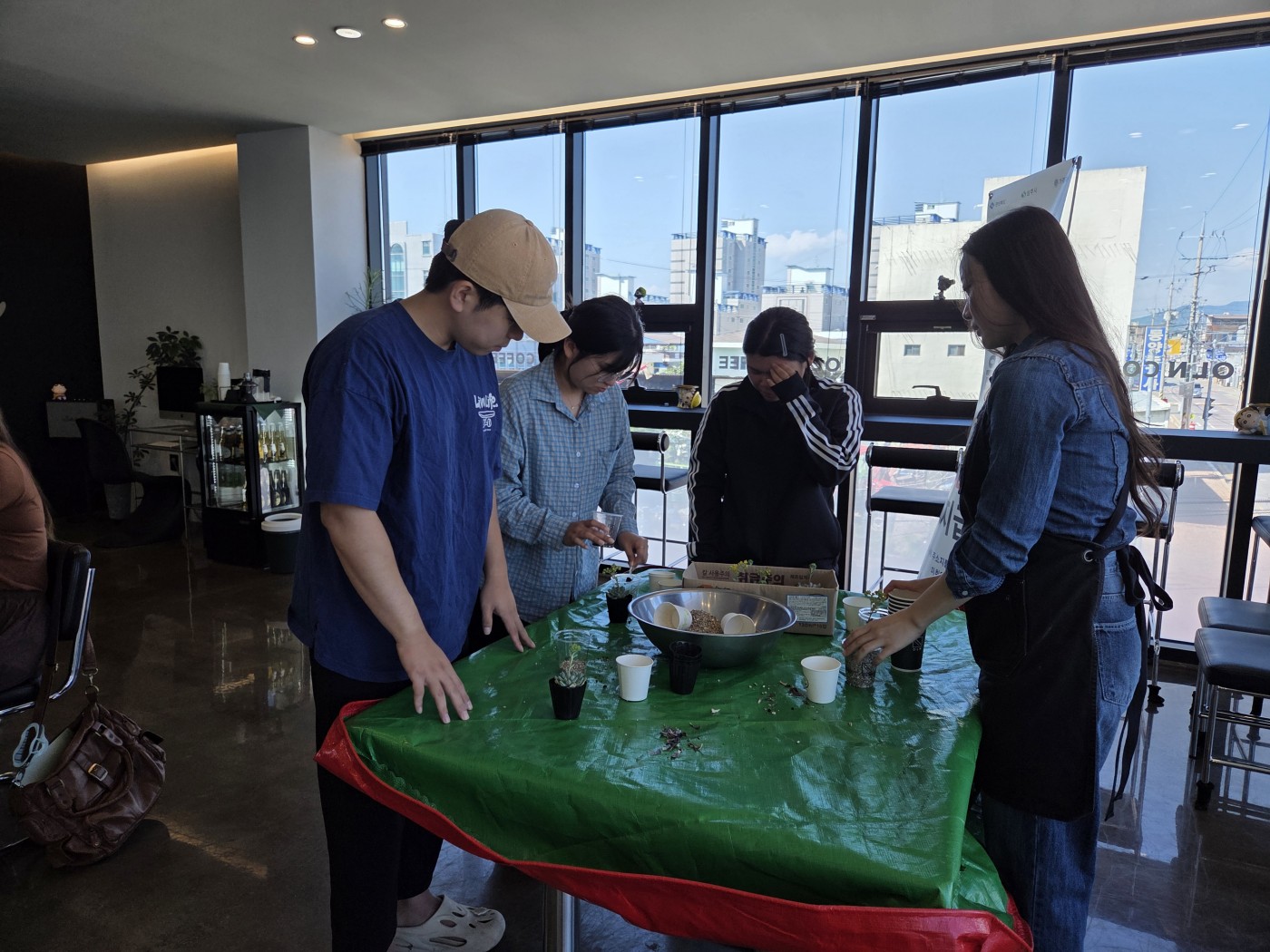 2025년 9월 11일 꿈이음 청춘카페 지원사업 의무교육(오르내) 관리자 0 331 2025.09.12 15:11 꿈이음 청춘카페 지원사업 의무교육1. 교육명: 음료 제조 및 커피박 업사이클을 통한 화분 제작 체험(2회차)2. 일시: 2025.9.11.(목) 10~12시3. 장소: 오르내(중앙로 290, 2층)