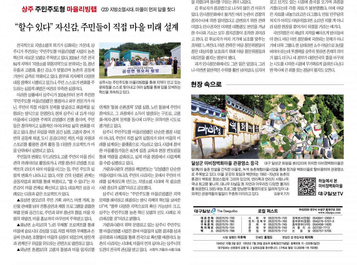 [상주시 주민주도형 마을리빙랩 성공사례] 지방소멸시대, 마을이 먼저 답을 찾다…지방위기대응 새 해법 주목