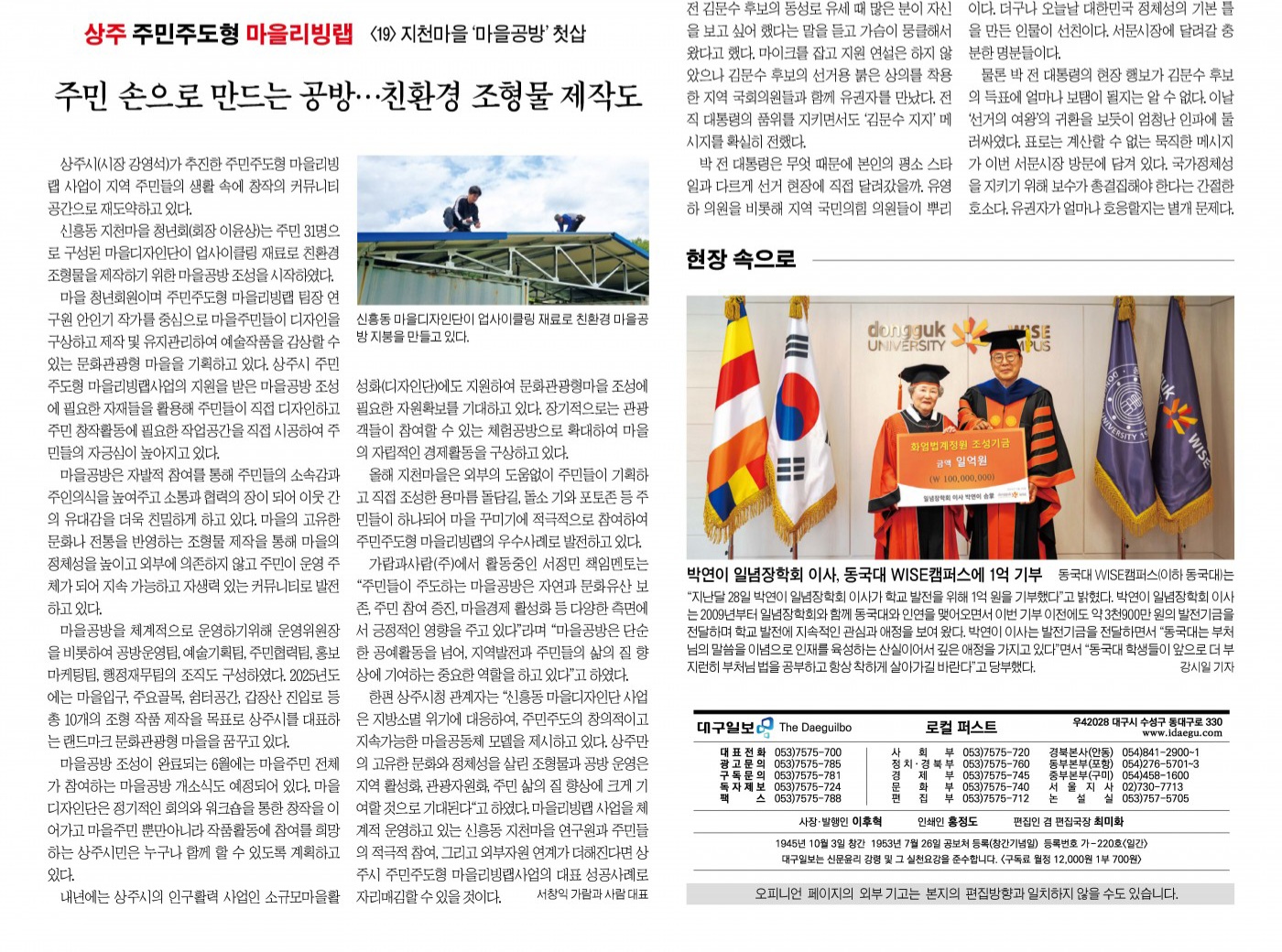 상주시(시장 강영석)가 추진한 주민주도형 마을리빙랩 사업이 지역 주민들의 생활 속에 창작의 커뮤니티 공간으로 재도약하고 있다.