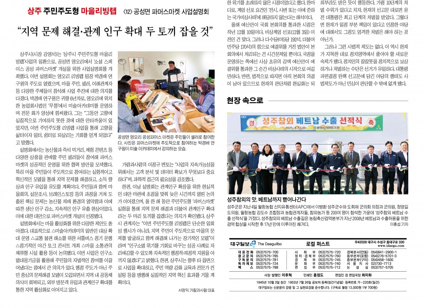 [상주시 주민주도형 마을리빙랩 성공사례] 공성면 파머스마켓 사업설명회...지역 활성화와 관계인구 확산 기대