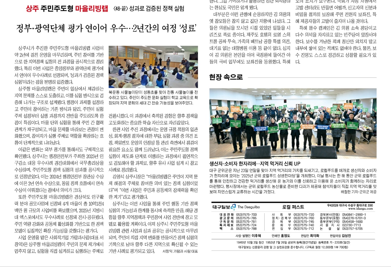 강영석 상주시장은 “마을리빙랩은 주민이 지역 문제 해결의 주체로 참여한 의미 있는 정책 실험이었다”며 “이번 사업은 주민과 공동체의 잠재력을 확인한 계기”라고 평가했다.